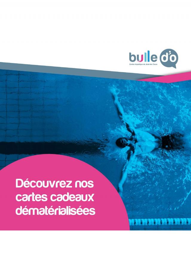 En ligne sur bulle-d-o.fr : montants fixes de 15€, 30€ ou 50€ à utiliser sur un an au centre aquatique.*