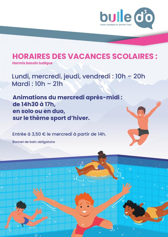 Pendant les vacances, le centre aquatique adapte ses horaires pour vous accueillir plus largement.